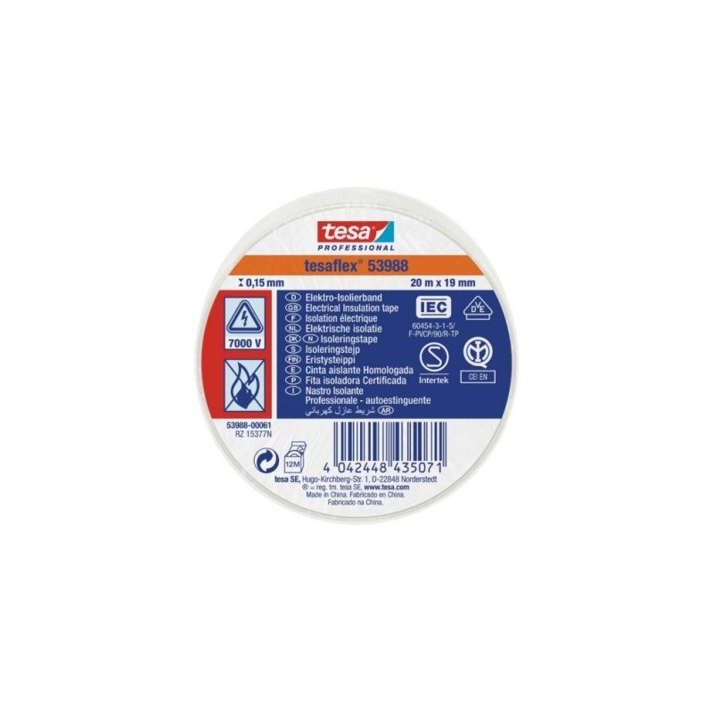 CINTA AISL. 20MT X 19MM TESATAPE PVC BLANCO 10PZ 53988-00061-00